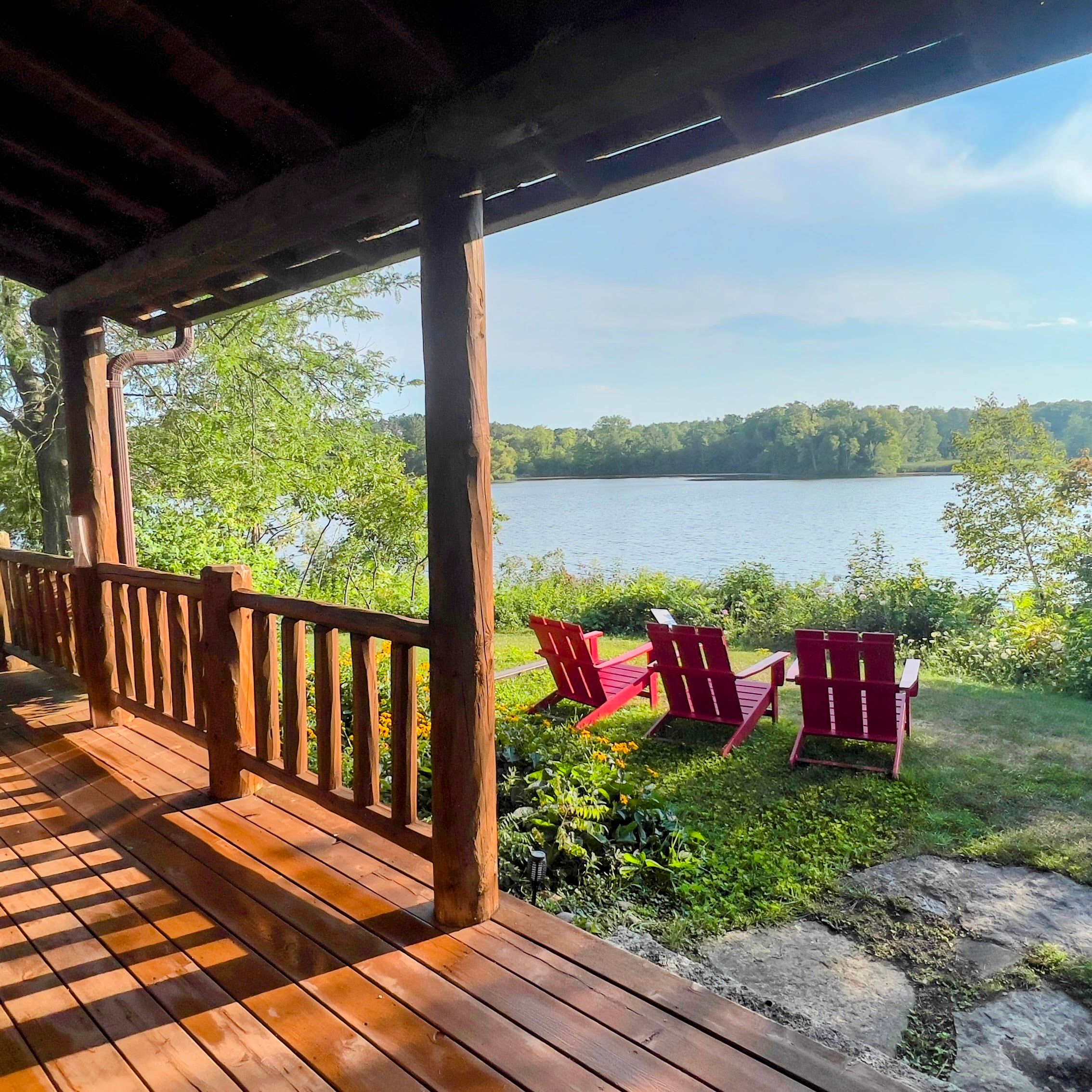 Tucked on a private peninsula in Wisconsin’s Kettle Moraine, Birchwood Log Cabin is a quiet 4-bedroom, 2-bath retreat with stunning lake views and space for up to 14 guests. Enjoy a wraparound deck, wood-burning fireplace, and open-concept great room for cozy nights in. While our lake is view-only, you’re just a short walk to Kettle Moraine Lake’s public beach, boat launch, and vibrant Tiki Bar. Come for the stillness, stay for the trails, sunsets, and connection. Open year-round. Pets welcome!